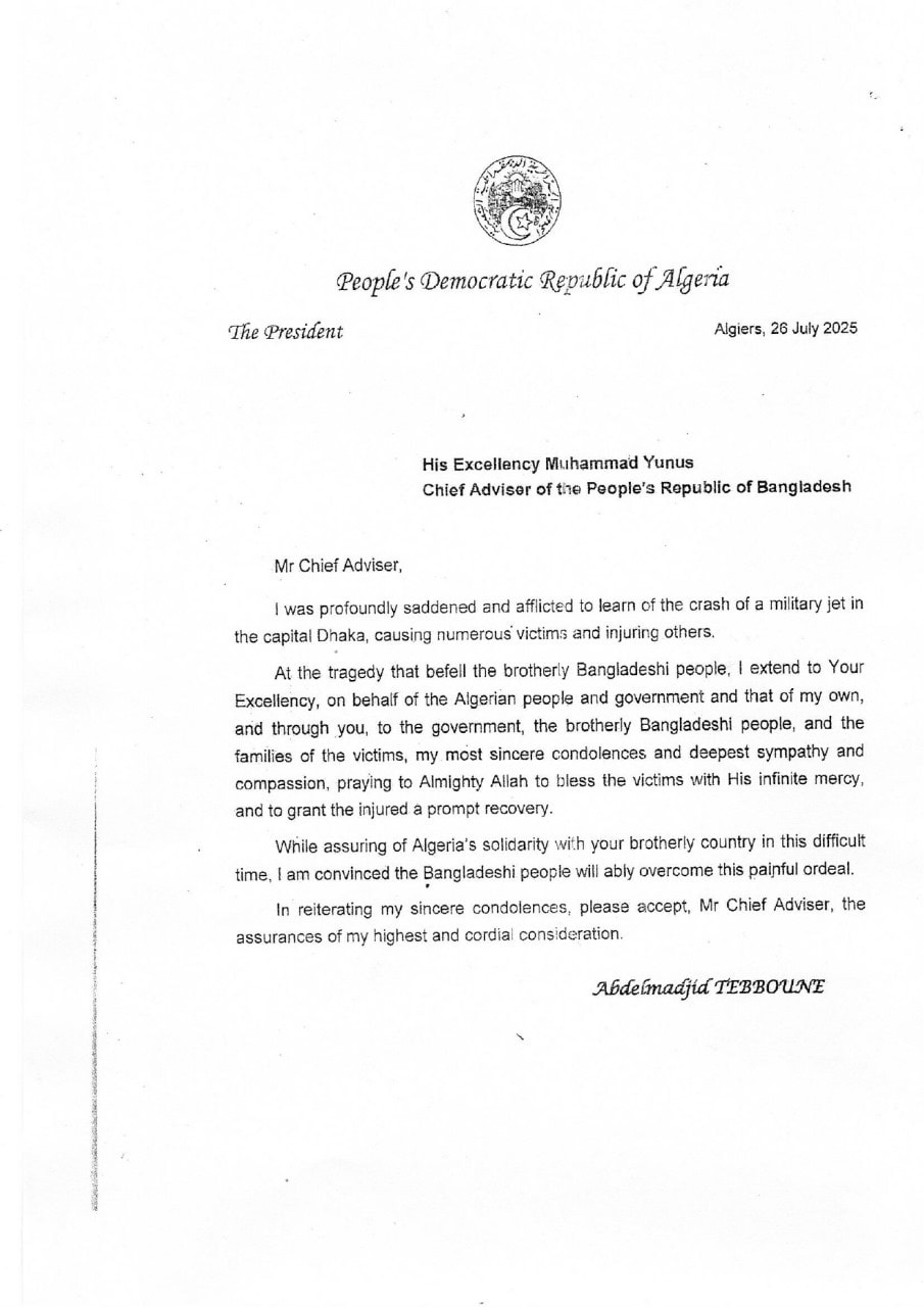 Following the devastating jet crash at the Milestone School on 21 July, which claimed the lives of several students and staff, nations across the globe extended their deepest condolences to the people of Bangladesh.
